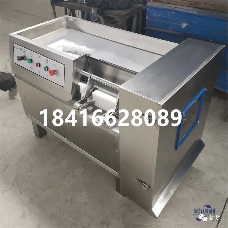 食品厂切丁机,羊肉串牛肉串切丁机本机模拟手工切菜,切丝,切段等原理,采用电机皮带变速方式实现高低运转。