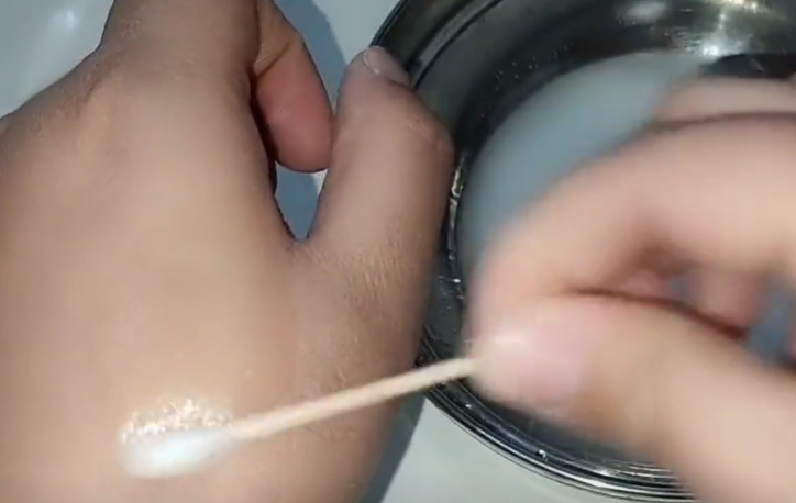 妙用一,平常我们在家里边做饭的时候,如果我们的手不小心被油溅到了,不是太严重的情况下,我们就可以用这个棉签蘸取这个溶液,涂抹被烫伤的部位,可以缓解这个灼烧感,效果非常的不错。