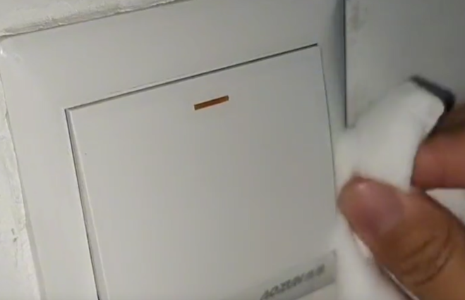 接下来擦拭我们的插座,轻轻一擦,污渍就不见了,而且白酒一挥发,小苏打的清洁能力很强,大家完全不用担心把插座弄湿。