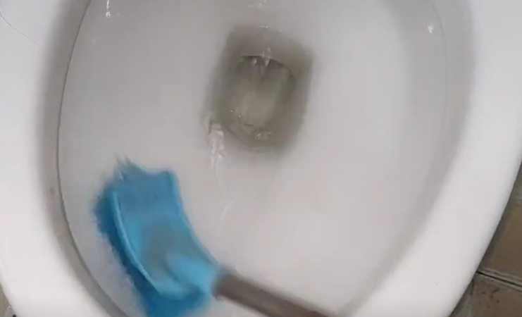 最后准备一个马桶刷,轻轻的刷拭我们的马桶,我们会发现马桶上面的黄渍立马就被刷干净了,而且有一股白酒的清香,也可以达到去除异味的效果,刷过之后我们直接冲一下水就可以了。