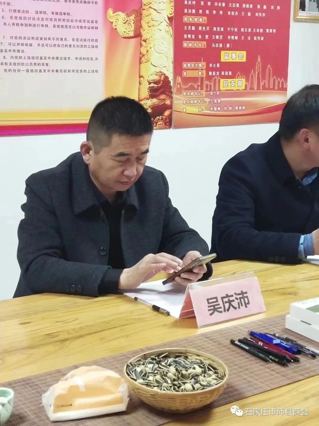 商会会长王高俊、党支部书记张军、执行会长吴庆沛、常务副会长冯正军、李德峰、刘亮、刘壮、副会长李伟、王振、王志强、段焕清、陈旭等在主会场参加了会议,监事会主席贾艳秋、秘书长石计划、常务副会长张道文、马志强、孙占峰、于亮、周长东、副会长吴治捷、张鑫、刘帅、周凯、张杰等以视频会议等其他方式参加了本次会议。商会特邀的4位沛县籍在石的党政事业单位嘉宾代表参加了会后座谈和联谊会。