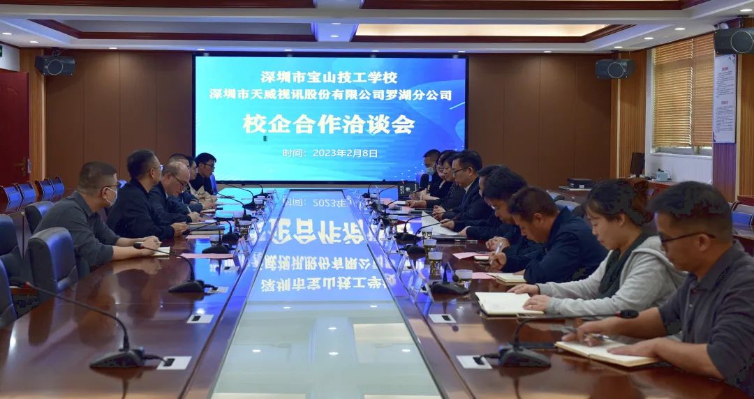 2023年2月8日,我校开工第一天,深圳市天威视讯股份有限公司罗湖分公司李树炜副总经理一行走进我校,校企共同洽谈新一年技能人才培养工作。我校邓志久校长等学校领导、系部及教研室负责人参加了会议。
