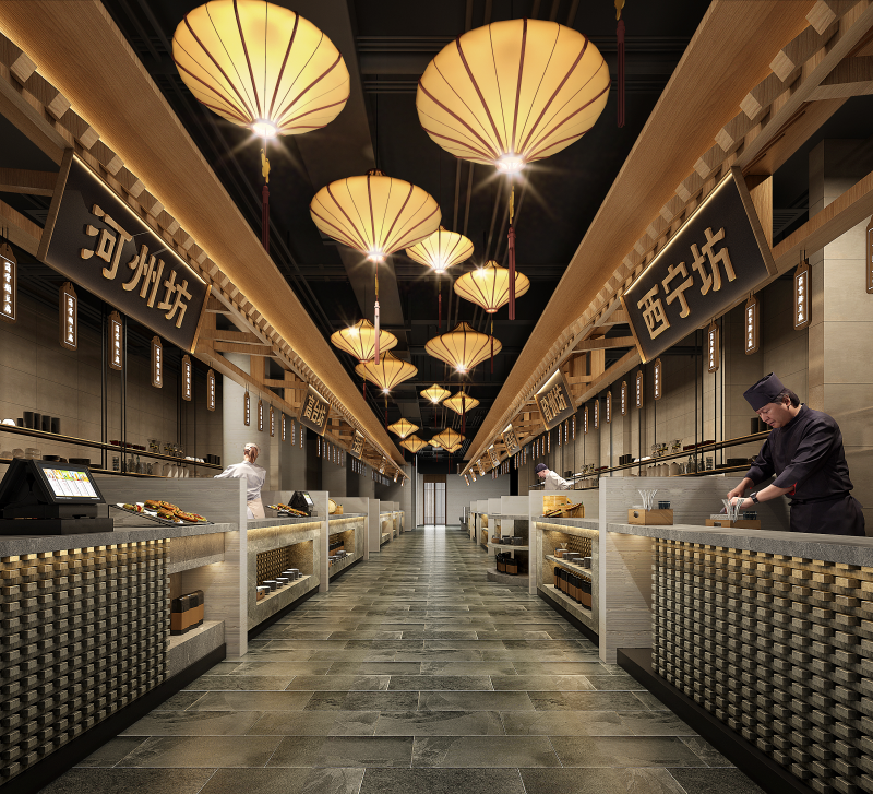 以背景音乐形式,将敦煌音乐、敦煌词赋、佛教梵音等曲调融入空间,加深游客的空间融入感。以二层空间为主,打造大漠美食明档,体验市井特色美食。人性化主题特色服务,互联网智能化讲解服务,新型APP点餐模式,光影结合式UI导视系统,等现代一体式便捷服务,在享受敦煌美食文化时了解历史悠久的敦煌,同时也能将当地的一些特产在就餐同时作为售卖中国国际建筑装饰及设计艺术博览会简称设博会(CIDF),诞生于2005年,历经十余年沉淀,现已发展成为在设计师选材、时尚生活方式、空间艺术设计展览等领域最权威,国际化程度最高的年度设计盛会。