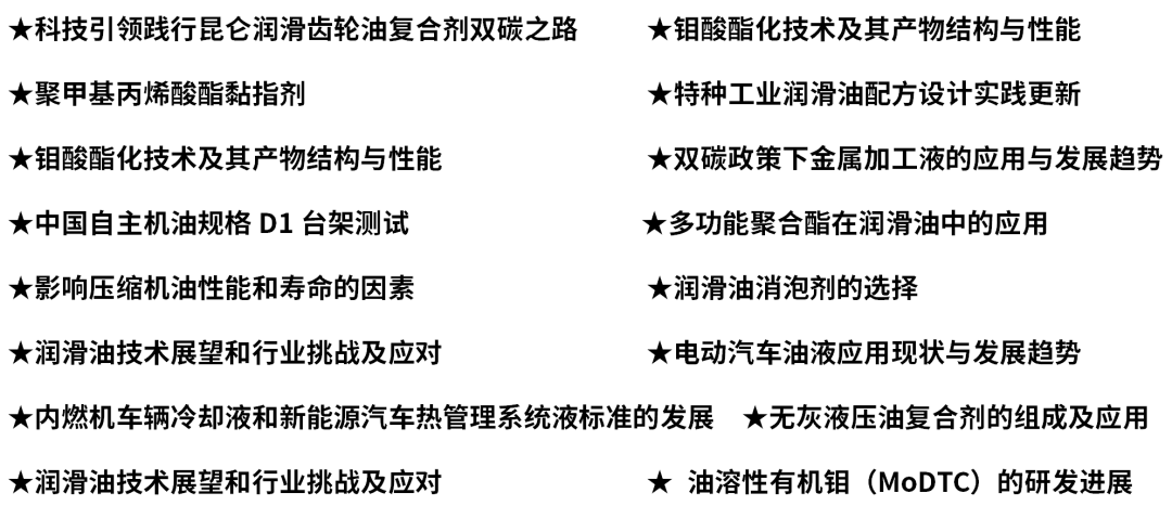 润滑油厂商、基础油、添加剂、石油分析仪器、金属加工液等企业,以及相关科研院所等人员。