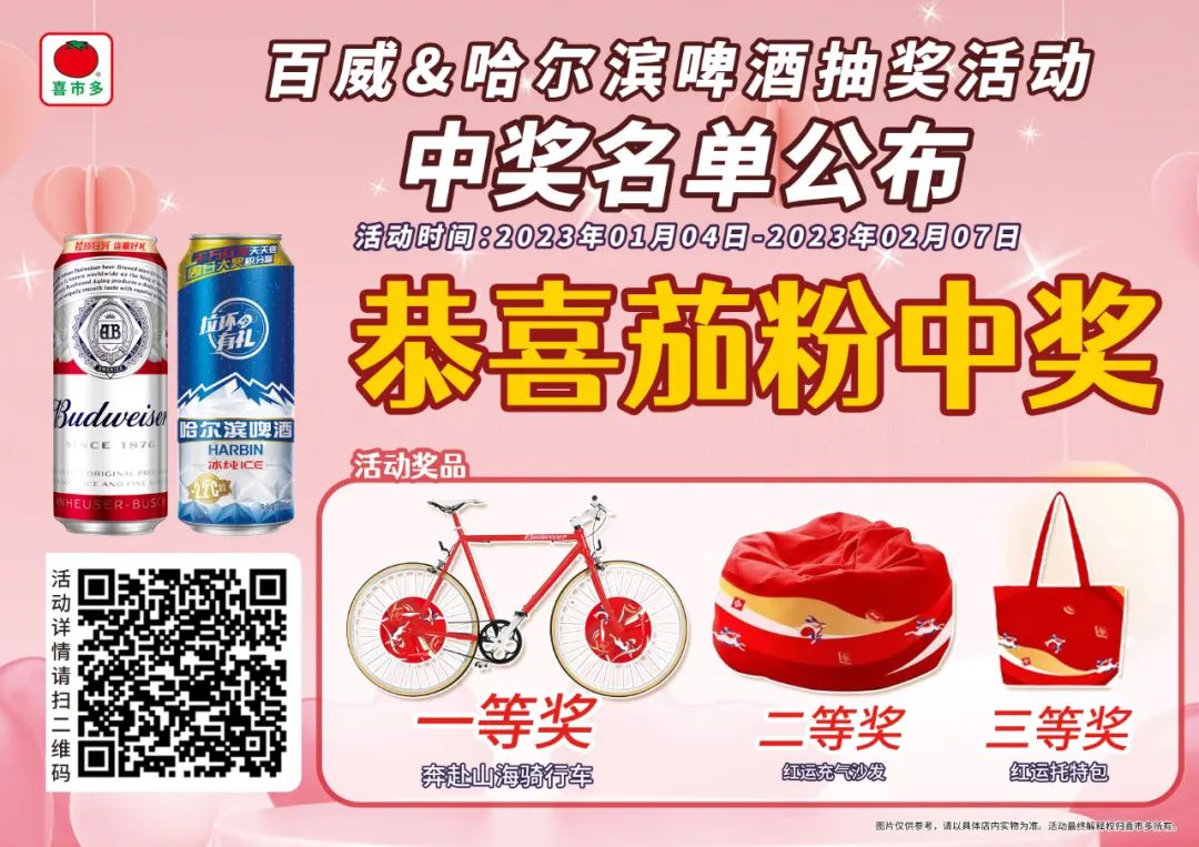 本次百威&哈尔滨活动抽奖的中奖概率是:奔赴山海骑行车 中奖概率0.37% ,红运充气沙发 中奖概率1.11%,红运托特包 中奖概率9.23%