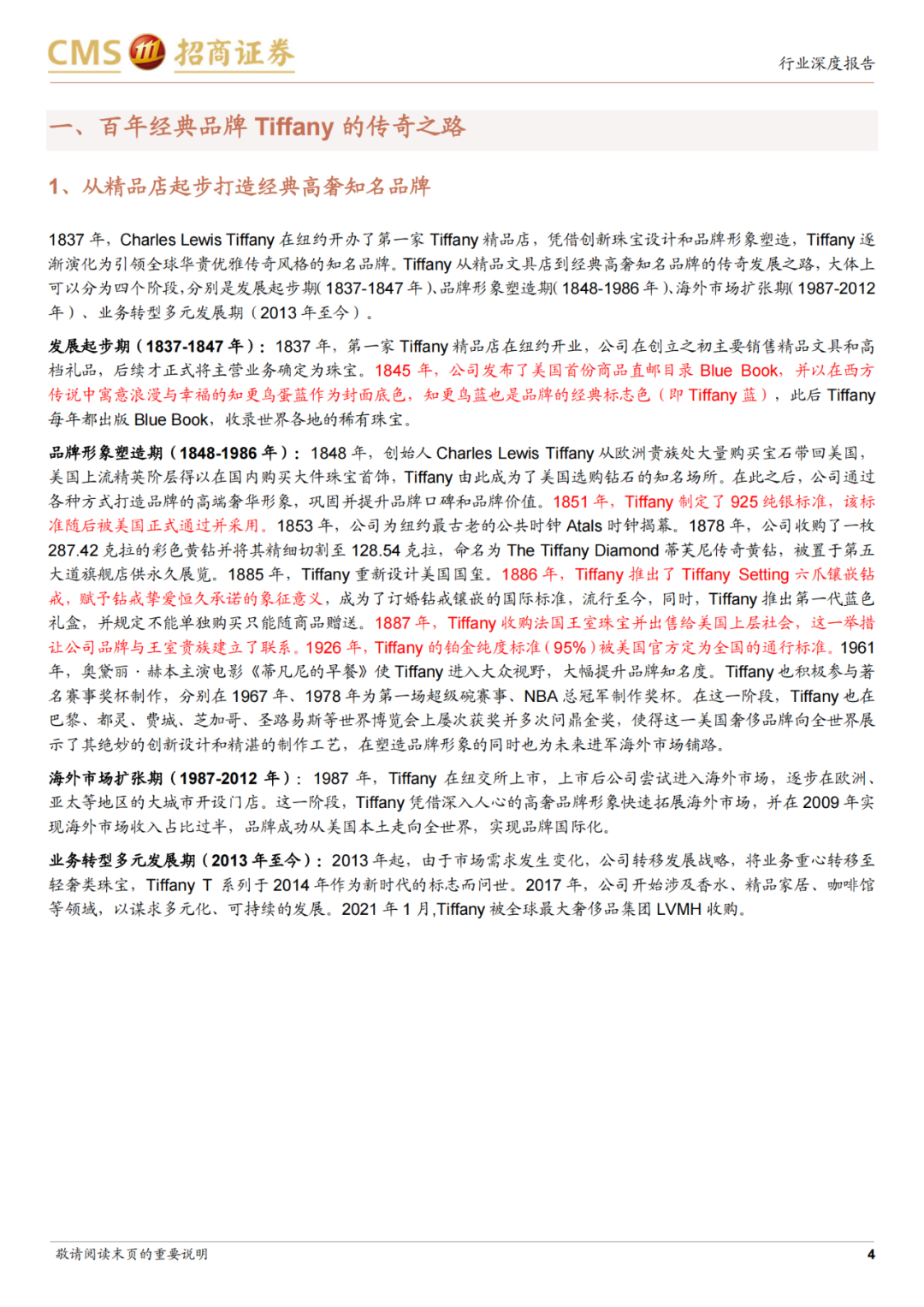 下载报告:珠宝行业海外对标公司研究系列报告:Tiffany,百年经典打造高端奢侈品珠宝品牌