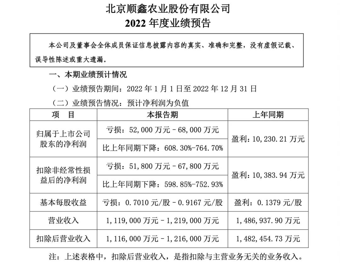 曾经的“低端酒之王”顺鑫农业出现业绩预亏,且亏损幅度巨大。据其预告,2022年营收预计为111.9亿元,去年同期为148.7亿元;净利预计亏损5.2-6.8亿元,同比下降608.3%-764.7%。与水井坊的原因类似,顺鑫农业也将酒类收入下滑归为消费场景减少。不过酒类只是顺鑫农业业务版图中的一块,其房地产与养猪产业也同期出现了业务下滑,导致顺鑫农业陷入巨额亏损。