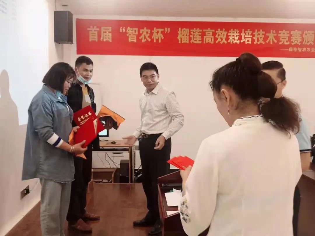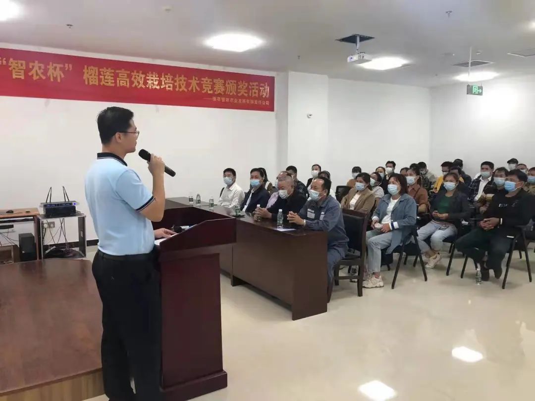 在人才培养方面,建立了科学系统的技能培育体系,形成榴莲种植技能标准,提供每月两期的理论培训和实操技能指导,定期举办“智农杯”榴莲高效栽培技术竞赛。通过这套人才培养体系,每年为榴莲产业培养出上百名专业扎实、技术过硬的榴莲栽培技术高素质人才,保障了榴莲产业人才的持续供应。