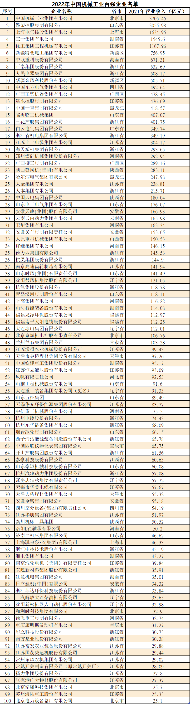 招商必备!2022年中国机械工业百强企业榜单最新出炉
