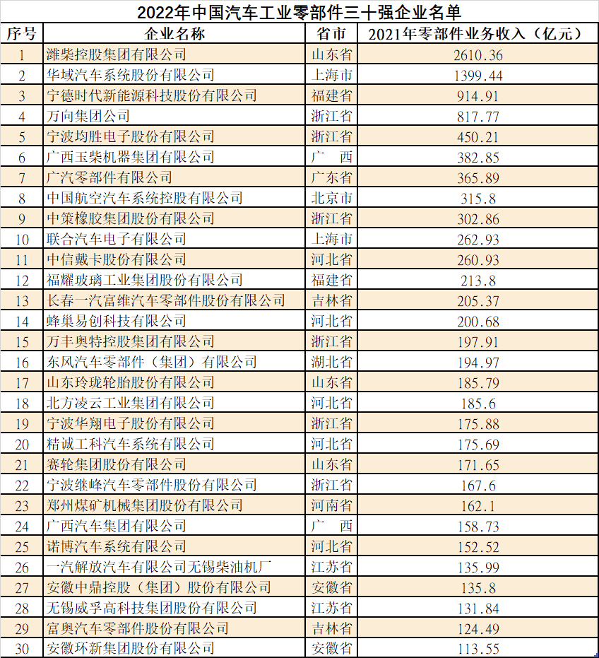 中国机械工业联合会执行副会长罗俊杰、中国汽车工业协会副秘书长陈士华代表主办方分别发布了2022年中国机械工业百强、汽车工业整车二十强、零部件三十强企业名单,机械工业信息中心副主任沈波主持了此次线上发布会。中国机械工业联合会执行副会长罗俊杰发布了2022年中国机械工业百强企业名单。中国机械工业集团有限公司(2021年营业收入3705.45亿元,下同)、潍柴控股集团有限公司(3055.98亿元)、上海电气控股集团有限公司(1634.95亿元)分别获得2022年中国机械工业百强企业前三名。(其他位次企业及信息详见文末名单)作为中国机械工业经济运行的晴雨表、转型发展的风向标,今年第18届机械企业100强在做强、做优、做大等方面展现出新活力,呈现诸多新特点。本届机械百强营业收入合计25391亿元,同比增长13.98%,增速比上届百强高0.65个百分点。本届机械百强企业利润总额合计1317亿元,同比下降6.17%。(扣除亏损的2家企业后,利润合计1492亿元,同比增长11.76%)。其中:58家企业利润同比增长,42家利润同比下降。本届机械百强入围企业最多的三大行业仍是——电工、石化通用机械和工程机械行业,分别入围32家、15家和12家,合计入围59家,占比近六成。本届机械百强中:东部地区:入围66家,合计营业收入同比增长14.45%;中部地区:入围21家,合计营业收入同比增长13.48%;西部地区:入围13家,合计营业收入同比增长12.33%。国有企业:45家入围,营业收入占比59.48%,同比增速12.63%;民营企业:53家入围,营业收入占比39.94%,同比增速16.33%;其他企业:2家入围,营业收入占比0.58%,同比增速-2.56%。本届机械百强企业人均营业收入235.43万元,同比提高26.11万元。受原材料涨价等多重因素影响,本届机械百强企业人均利润12.21万元,同比下降0.98万元。据测算,同期机械工业(不含汽车)规模以上企业人均营收146万元左右,人均利润9万元左右。本届机械百强企业数量仅占全行业(不含汽车)规模以上企业的0.12%,营业收入占14.66%,利润占12.13%,职工人数约占9%。本届机械百强企业研发投入合计906.5亿元,同比增长19.59%,高于同期营业收入增速5.61个百分点。研发投入占营业收入的比重3.57%,比上年同期提高0.17个百分点,比全行业(不含汽车)平均水平2.41%(根据国家统计局公布的2021年大行业R&D经费情况估算值)高1.16个百分点。近年来,我国机械企业在不断成长,无论是规模、效益,还是科技创新、国际竞争力,都有了长足进步,与世界同类企业的差距不断缩小,成长性和运营效率都有较好表现。机械百强中:2011年,国机集团成为我国机械工业(不含汽车)首个进入世界500强的企业,排在第434位,此后连续12年入围,2022年排在第224位,比2021年提高60位。2021年,潍柴动力股份有限公司成为第二家入围世界500强的机械企业(不含汽车),2022年继续入围排在第452位。尽管我国机械、汽车企业不断发展壮大,国际地位不断提高,但与世界同行顶级企业相比,仍存在一些差距,如:增长速度趋缓,盈利能力较弱;企业自主创新能力不足,共性技术研发主体缺位;一些关键基础材料、核心基础零部件、先进基础工艺和产业技术基础发展相对滞后;一些重大关键技术和产品缺失;部分高端关键装备、短板设备仍受制于进口;知识产权保护不足;自主品牌培育滞后等。这都是制约我国机械、汽车工业由大到强、高质量发展的关键问题。2022年中国汽车工业整车二十强、零部件三十强企业榜单中国汽车工业协会副秘书长陈士华发布了2022年中国汽车工业整车二十强、零部件三十强企业名单。上海汽车集团股份有限公司(2021年营业收入7798.46亿元,下同)、中国第一汽车集团有限公司(7056.96亿元)、东风汽车集团有限公司(5555.15亿元)分别获得2022年中国汽车工业整车二十强企业前三名;潍柴控股集团有限公司 (2021年零部件业务收入2610.36亿元,下同)、华域汽车系统股份有限公司(1399.44亿元)、宁德时代新能源科技股份有限公司(914.91亿元)分别获得2022年中国汽车工业零部件三十强企业前三名。(其他位次企业及信息详见文末名单)