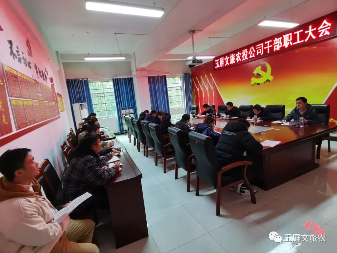 2月6日,县文旅农投公司在会议室召开干部职工大会,公司董事长赵建宇主持会议,会上传达学习了习近平总书记在二十届中央纪委二次全会上的重要讲话精神、省委农村工作会议精神、玉屏侗族自治县第十四届纪律检查委员会第三次全体会议精神、玉屏侗族自治县“四化”工作领导小组会议暨贯彻落实国发〔2022〕2号文件专题会精神等内容,并研究贯彻落实意见。