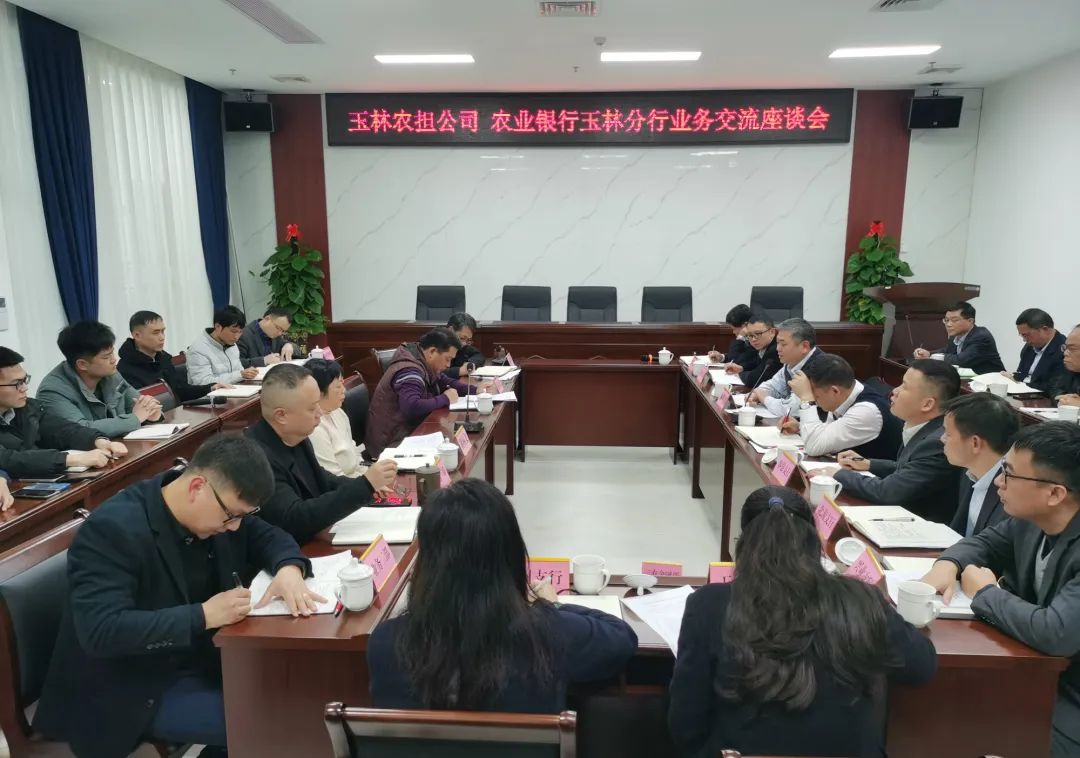 2023年2月7日下午,玉林市农业信贷融资担保有限公司(以下简称玉林农担公司)与农业银行玉林分行举行业务交流座谈会,进一步夯实业务合作基础,展望2023年合作前景。玉林农担公司董事长、总经理杨勇,农业银行玉林分行副行长林明勇出席会议并讲话,玉林农担公司董事、副总经理陆锋,董事、副总经理蒋林文,农业银行各县(市、区)支行分管副行长及双方的业务骨干参加座谈会。