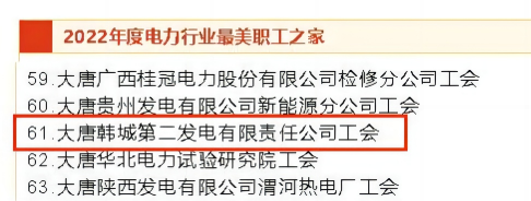 2月8日,中国电力企业联合会《当代电力文化》杂志组织开展的 “2022年度电力行业最美职工之家”寻找推介活动落下帷幕,公司工会荣获“最美职工之家”荣誉称号。