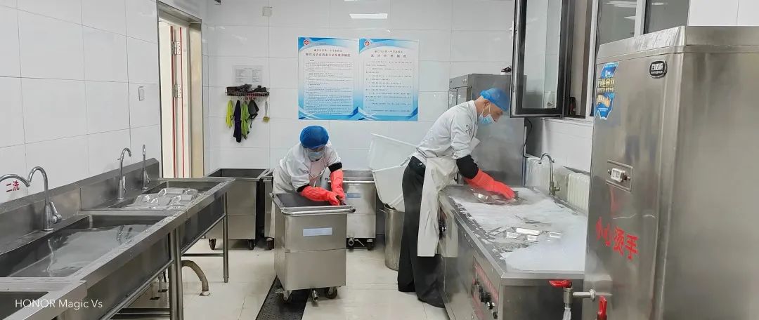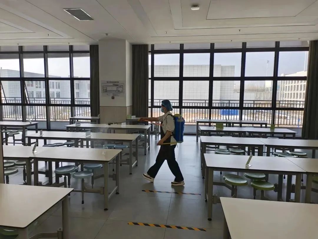 为在新学期给广大师生营造干净、整洁的就餐环境,公司组织人员提前入场,全面开展卫生大扫除和消毒消杀工作。将餐厅各操作间及餐厨用具等都进行了细致的卫生清理,做到窗明几净、地面无污、炊具无尘,就餐大厅桌椅摆放有序,用餐环境美观明亮。同时,对餐厅进行了全面消毒,杜绝食品安全隐患,保障广大师生放心就餐。