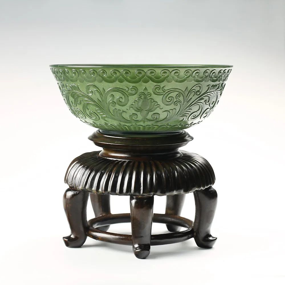 在玉雕中让人叹为观止的技艺莫过于薄胎工艺。清朝乾隆皇帝曾作诗:“薄遏片刻铢,轻于举鸿毛,在手疑无物,定睛知有形。”描绘薄胎玉器的精美和轻巧。据说,乾隆非常喜欢薄胎玉器,而因为其成功率低,所以每成功一件,他就作诗一首。
