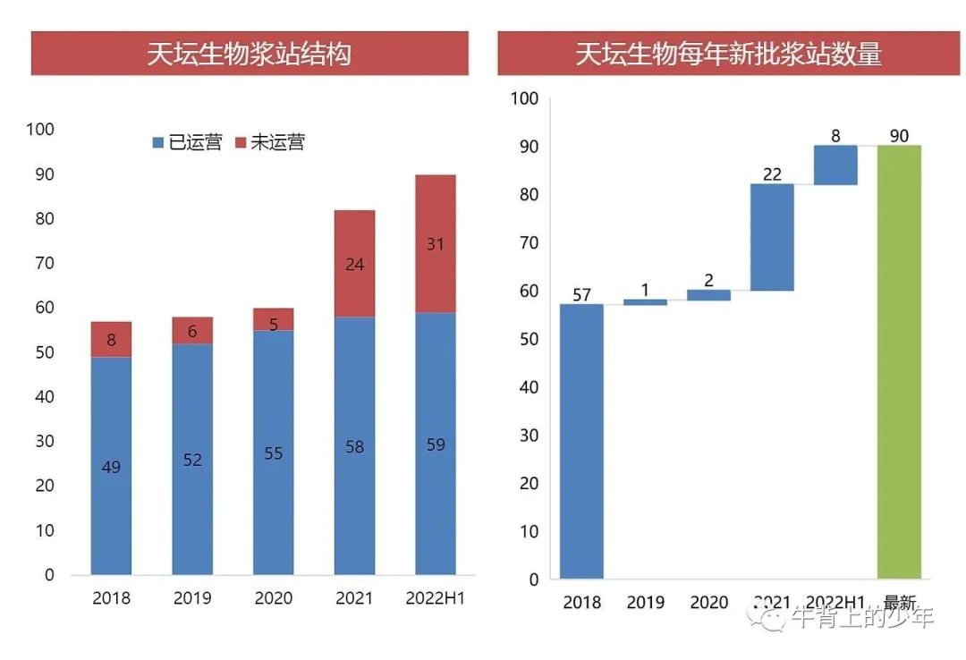 重点看派林、天坛。华兰八字不合管理层不坦诚,加上业务上疫苗占比高,跟起来挺复杂。新获批浆站量自然国家队天坛最高,最近四年新增站达30多家,派林的浆站来源于并购,不可持续,华兰22年上半年4家,上海莱士玩资本运作,不关注。