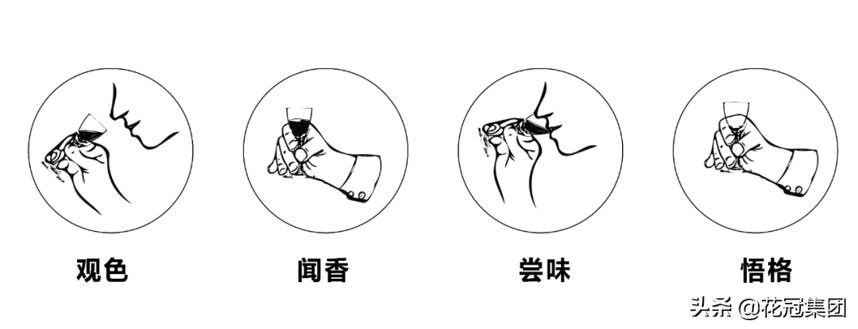 “观、闻、品、悟”白酒品鉴的顺序已经被白酒专家和爱好者们使用了很多年,它是让你了解一款白酒的合理途径,10分钟后,你将对面前的这杯酒不再陌生,你将学会如何品鉴它,并且真正成为一名品酒凡尔赛人。以下是四个步骤的具体操作:
