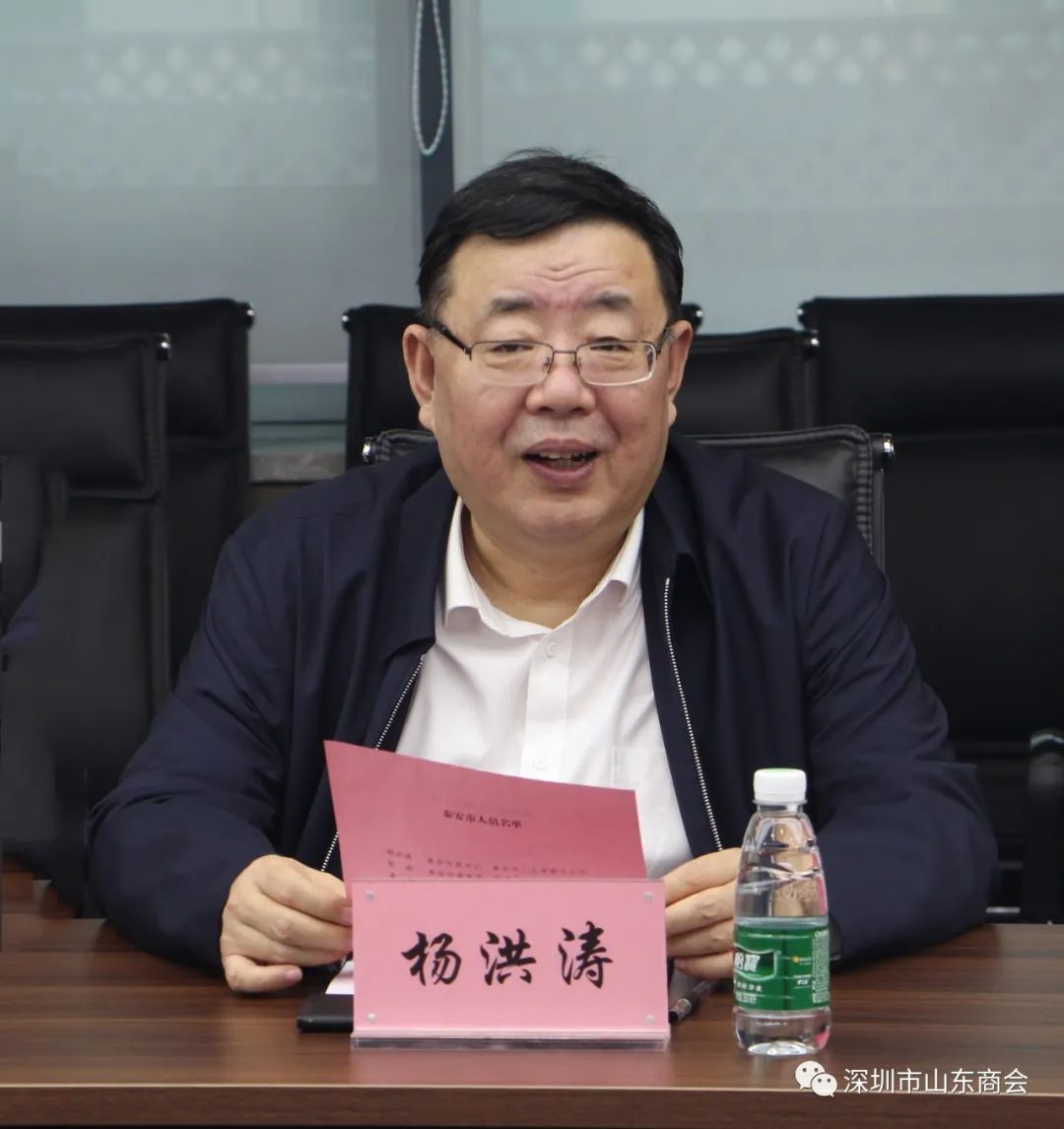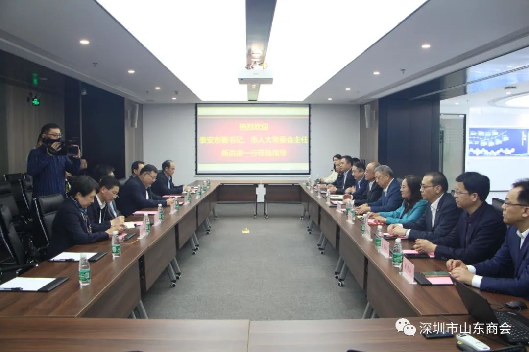 商会监事长梁尚迎向杨书记一行对家乡领导的亲切慰问和关心表示感谢。并介绍了泰安人在深圳的发展情况,梁监事长表示,家乡领导的肯定和殷切期望,对我们来说是鼓励和鞭策。身为泰安人,不论走在哪里,乡音未改,乡情依旧,始终不会忘记家乡的深情厚谊和养育之恩。建设家乡,回馈泰安,既是责任、义务,也是在外游子的共同心愿。接下来将发挥自身优势和资源,积极参与泰安的发展建设,为泰安市经济高质量发展做出贡献。