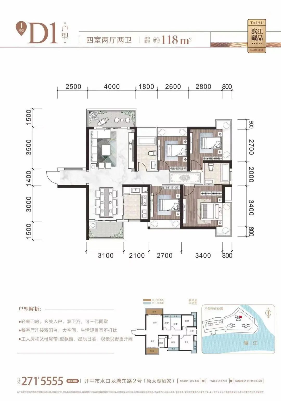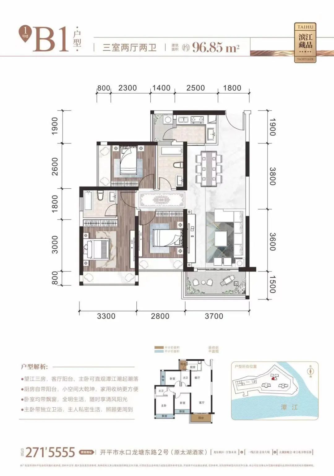 江湾之上,鉴阅非凡。太湖珑湾是以270°环幕江景为中心而打造的高端住宅小区。项目位于开平市325国道水口桥旁(原水口太湖酒家),紧靠潭江与新桥水,双江环绕,尽揽一线江景。项目规划3栋住宅和1栋公寓,设计主要以简约大气的新中式风格为主,采用一轴一核心的空间结构,保证空间的多元化使用。此外,社区还配套业主专享的私人游艇及3公里滨江景观带,将可贵的江景资源实现最大化利用,为小区业主提供全方位的度假式居住体验,用精致品质生活来致敬水口的城市未来。