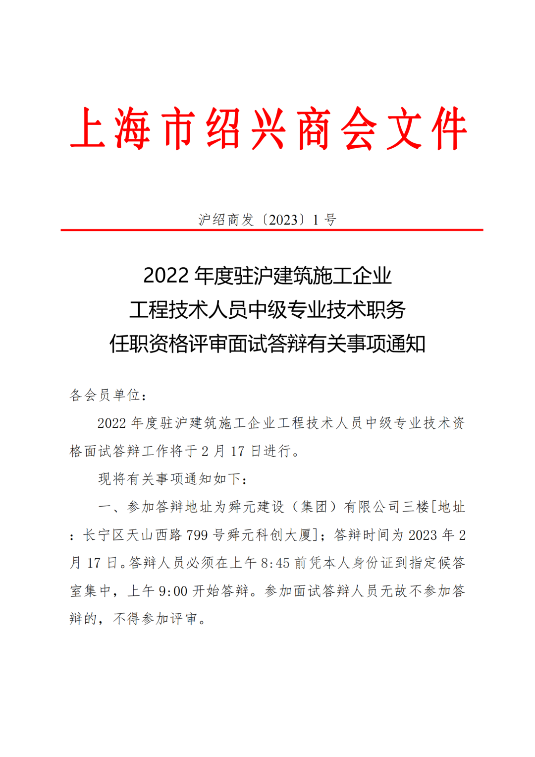 1. 答辩面试时间。2022 年度驻沪建筑施工企业工程技术人员中级专业技术资格面试答辩工作将于 2 月 17 日进行。
