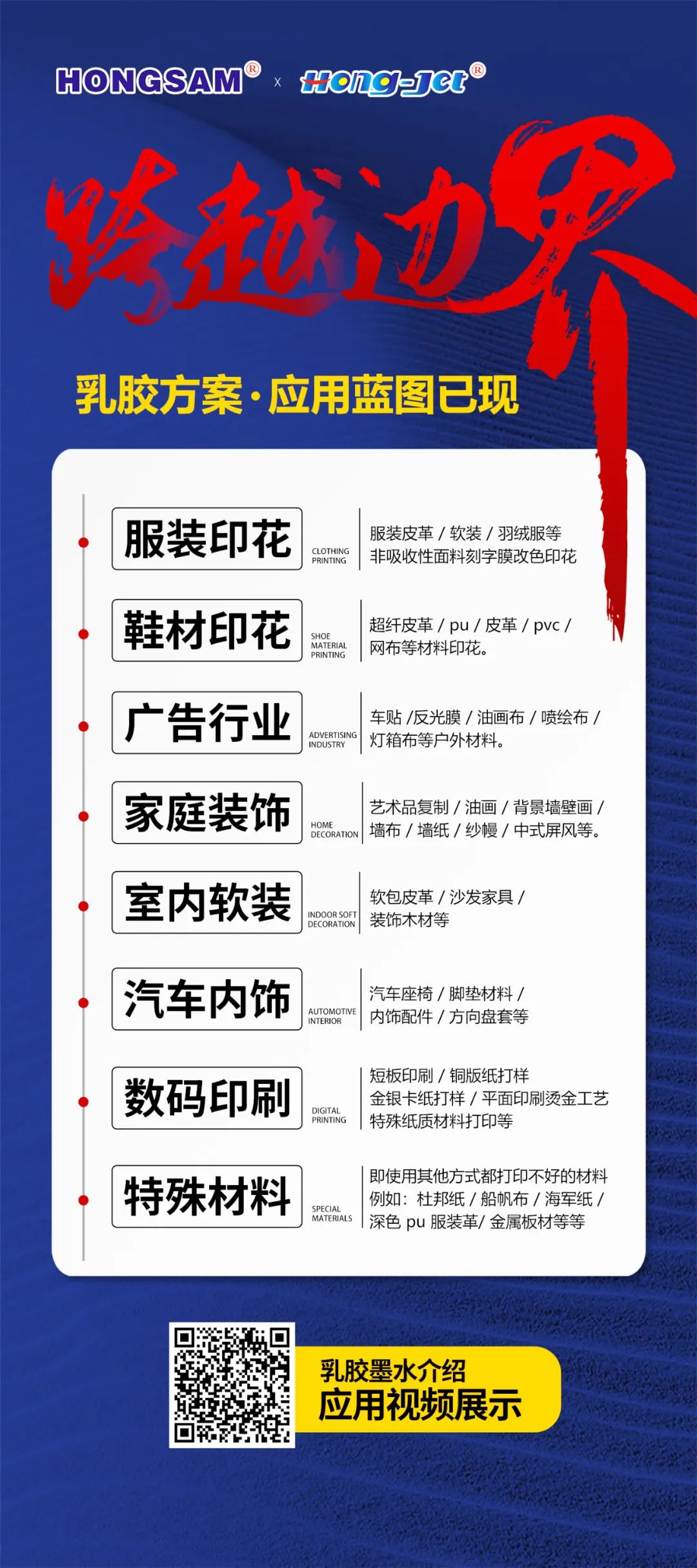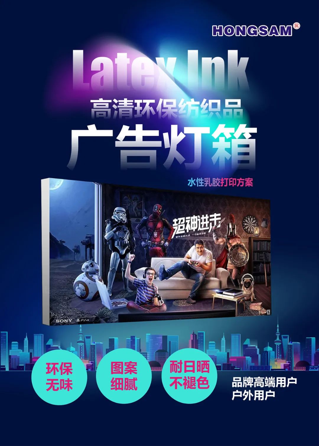 在传统广告打印领域,作为操作人员可能最头疼的问题就是气味,这些气味在一定程度上是有害的,在打印结束后,气味也会在产品上持续挥发,要求较高的市场,产品风险是比较高的。而鸿盛水性乳胶打印方案能很好的解决这些问题,且使用材料广泛,应用领域无边界。目前鸿盛乳胶方案已和国内某品牌商建立合作,这也有力证明了乳胶方案的功能性,也是对鸿盛数码开发乳胶方案的肯定。