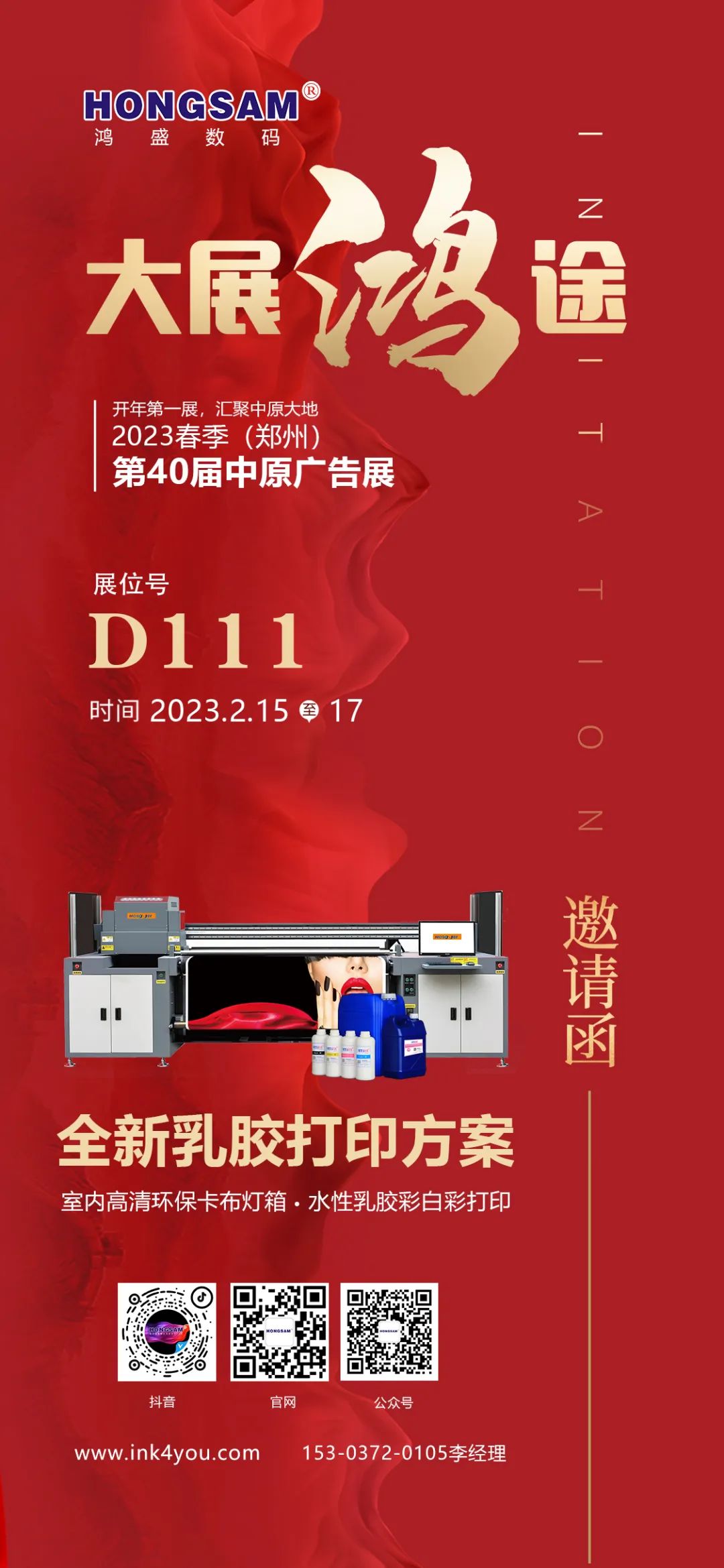 展会为期三天,鸿盛数码将会带来更多的乳胶打印介质的展示,想要了解乳胶打印方案的朋友们,欢迎来到鸿盛展位~