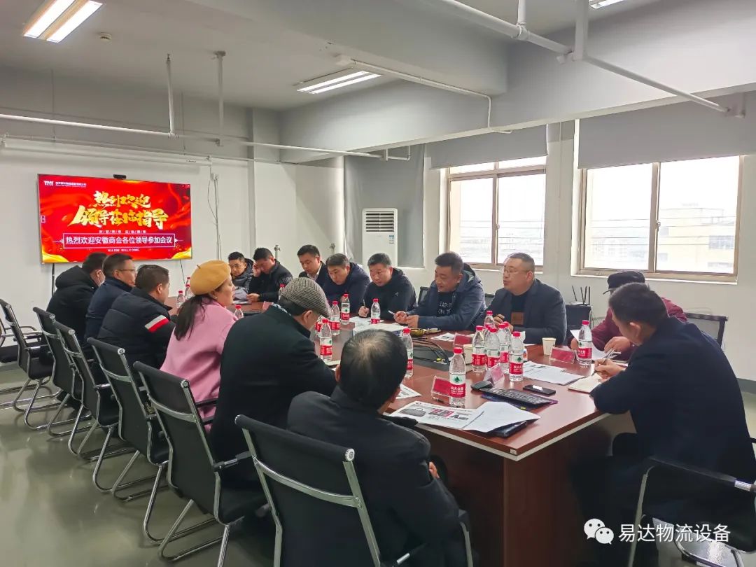 2023年2月10日,金华市安徽商会会长办公会议在金华易达物流设备有限公司召开。易达董事长闫瑞峰出席并主持了会议,特邀领导及各商会会长出席会议并讲话。