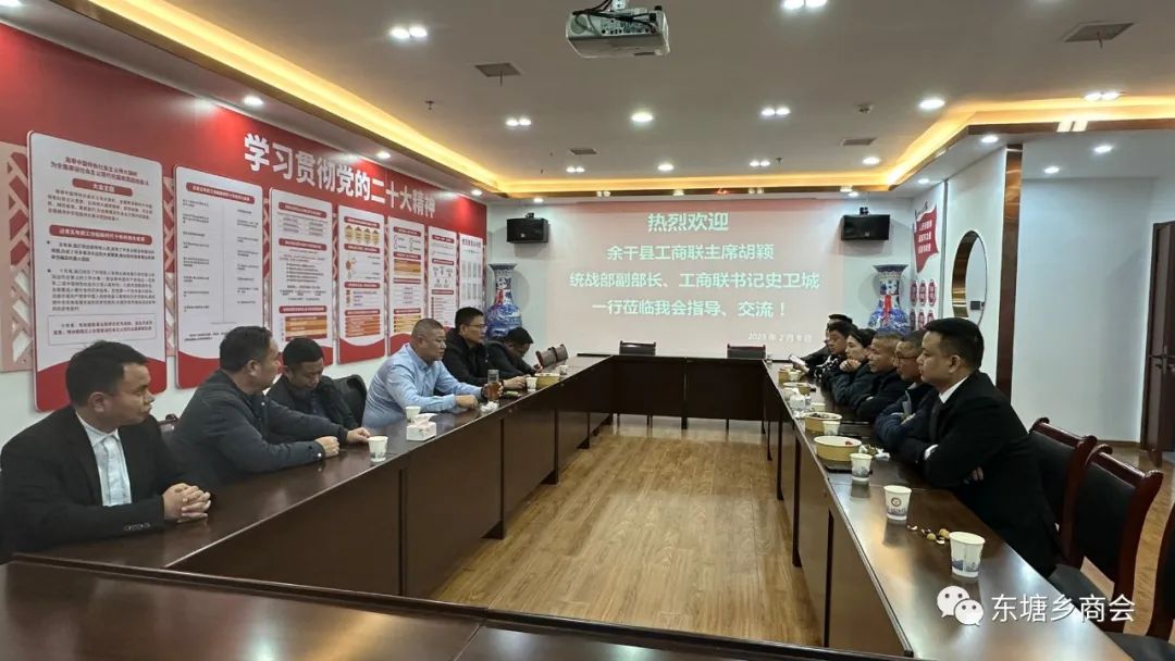 2023年2月8日下午,余干县东塘乡商会常务副会长吴果然、秘书长张望林陪同余干县工商联主席胡颖,县委统战部副部长、工商联党组书记史卫城,上饶市工商联第五届执委、知名企业家—“五一集团”董事长舒桂秀一行前往上饶市干越商会举行座谈会,市工商联二级调研员徐丙东应邀参加座谈。