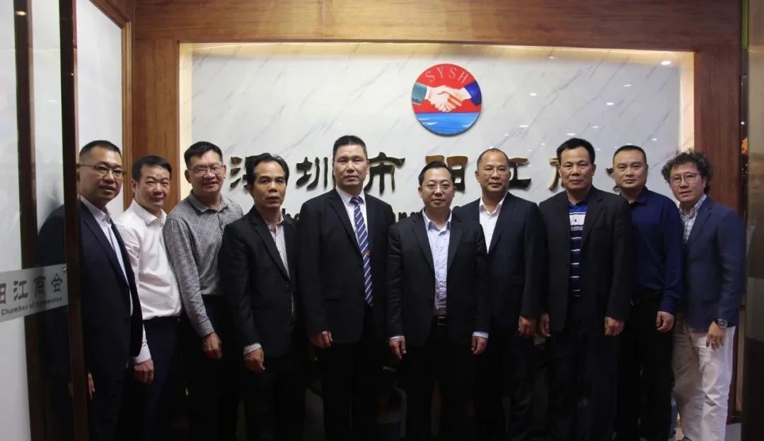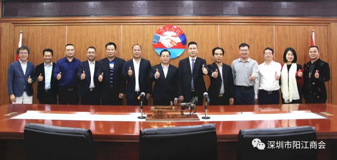 记、县总商会常务副会长姚文杰(右四),阳西县工商联及驻点深圳招商组有关负责人等领导与我会领导合影留念