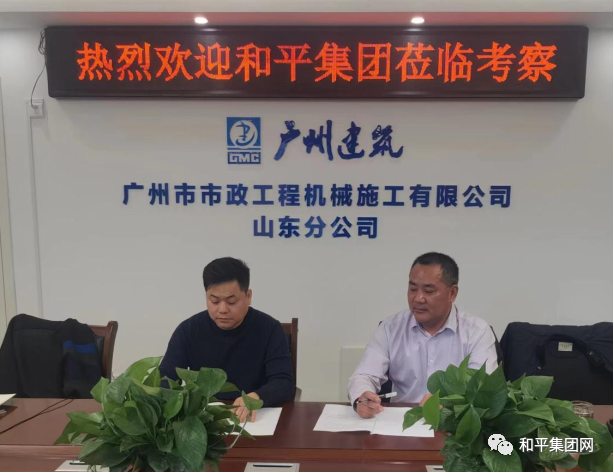 (2月9日讯)2023年2月8日,中国和平集团与广州市政机械在山东签署战略合作协议。中国和平集团副总裁文合庆与广州市政机械山东分公司总经理余正阳代表双方签约。