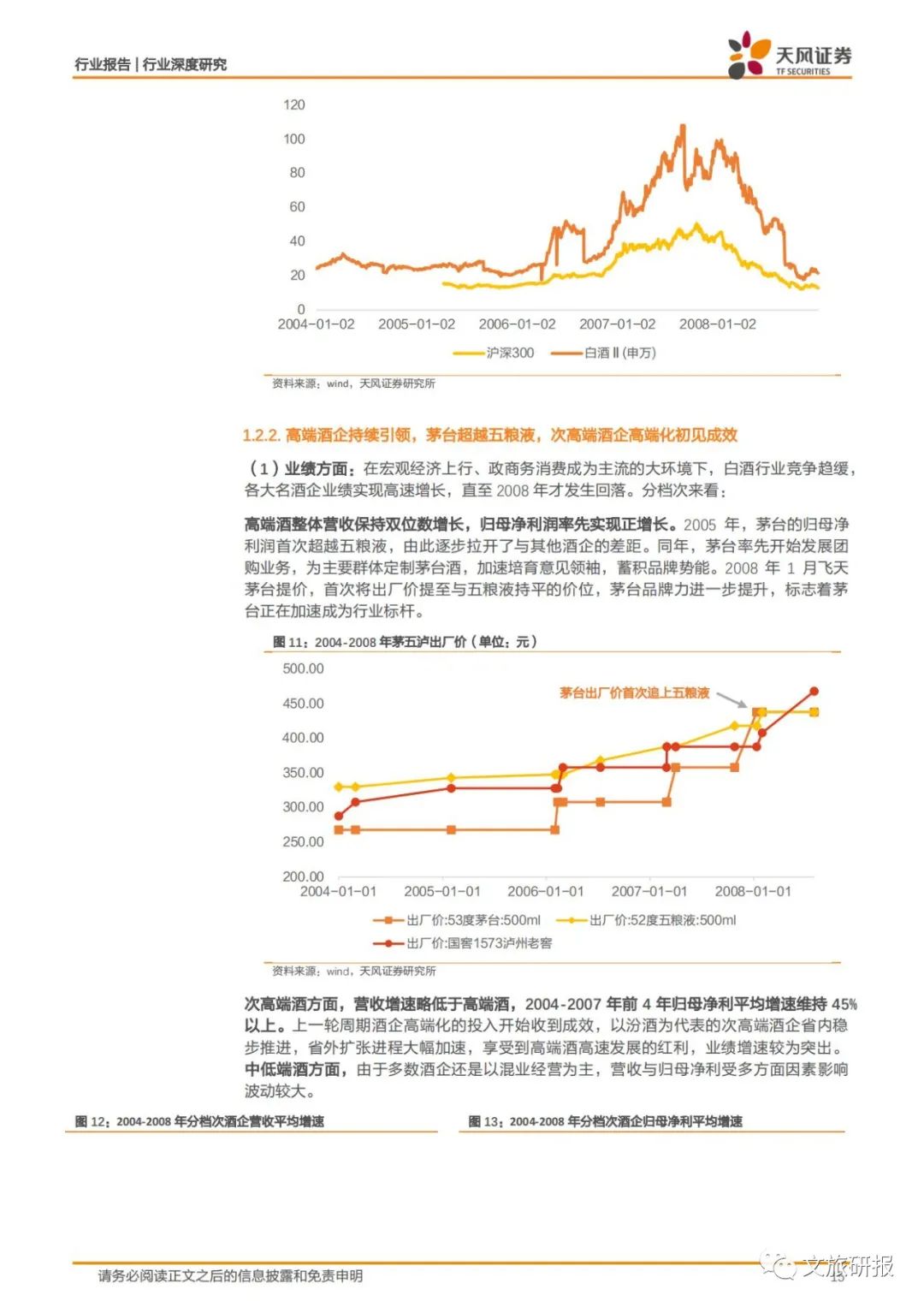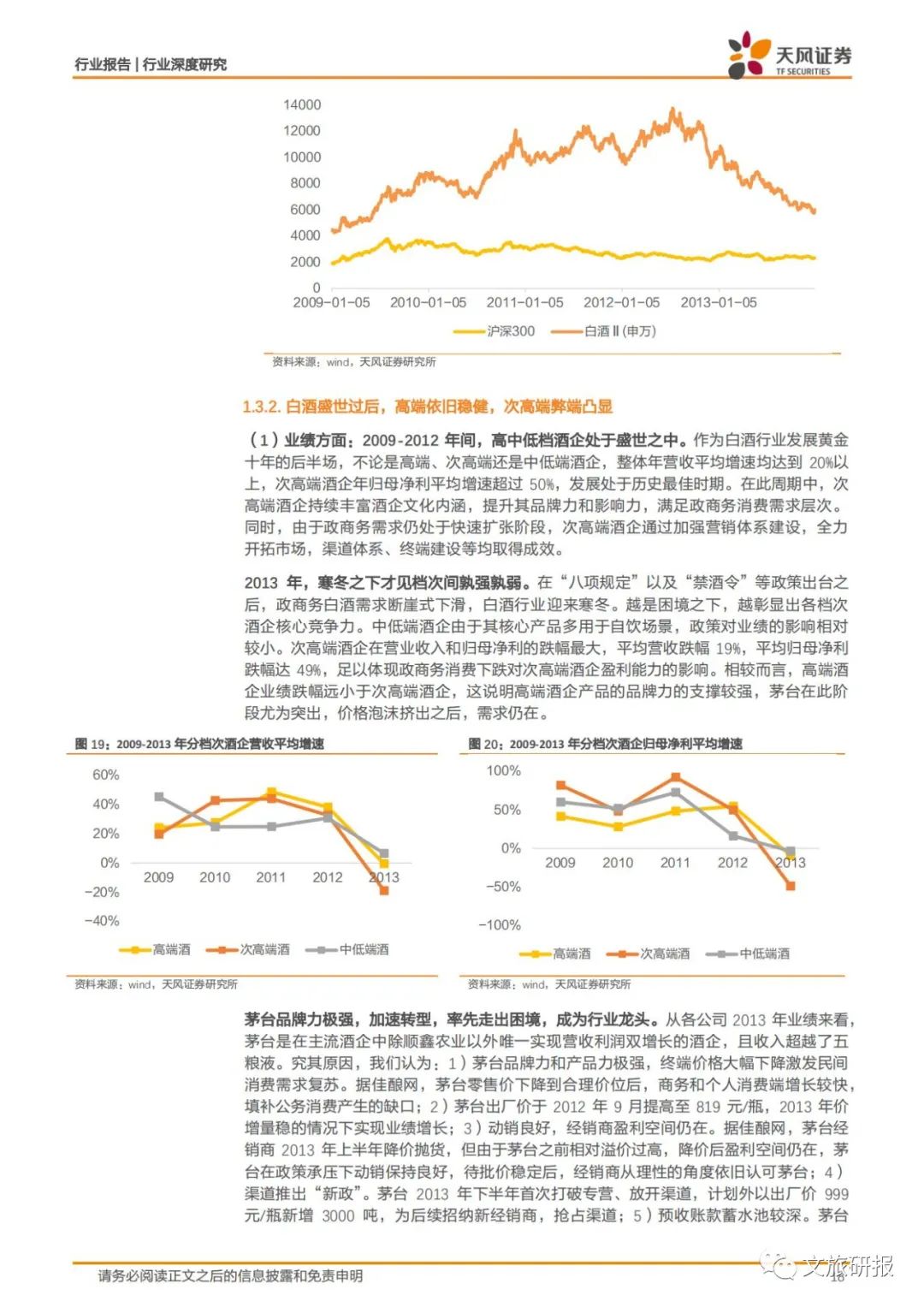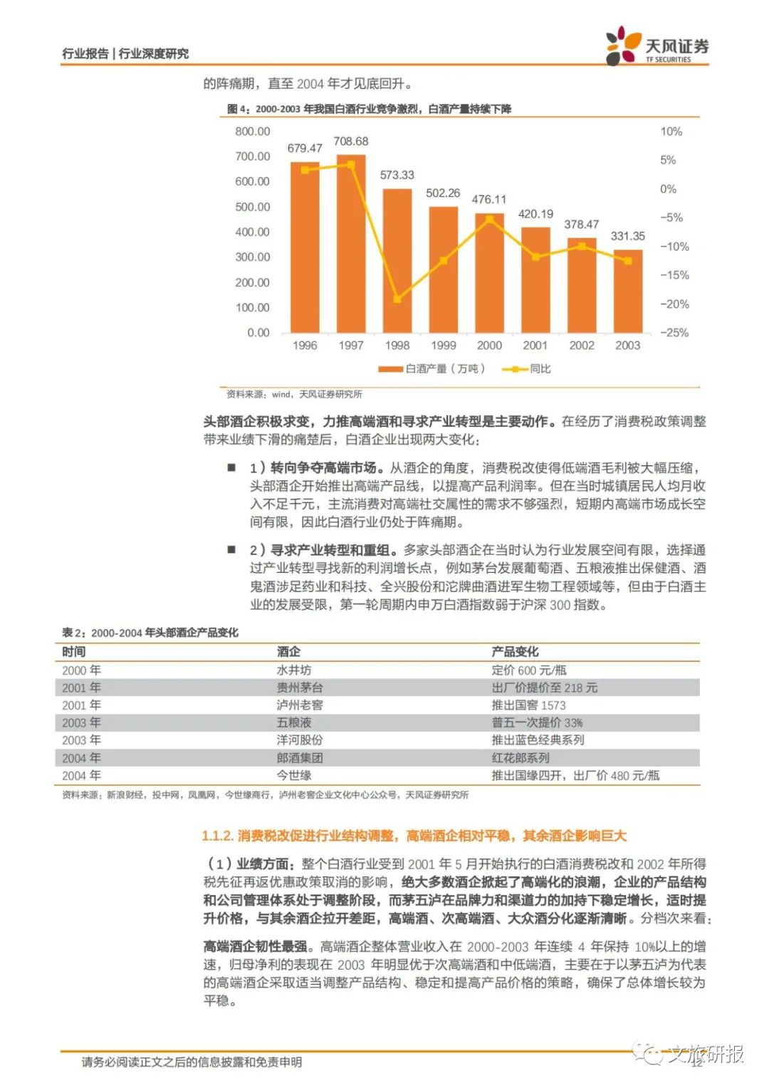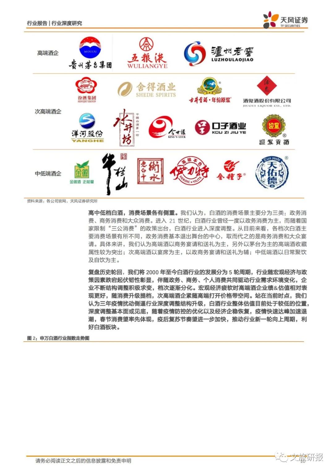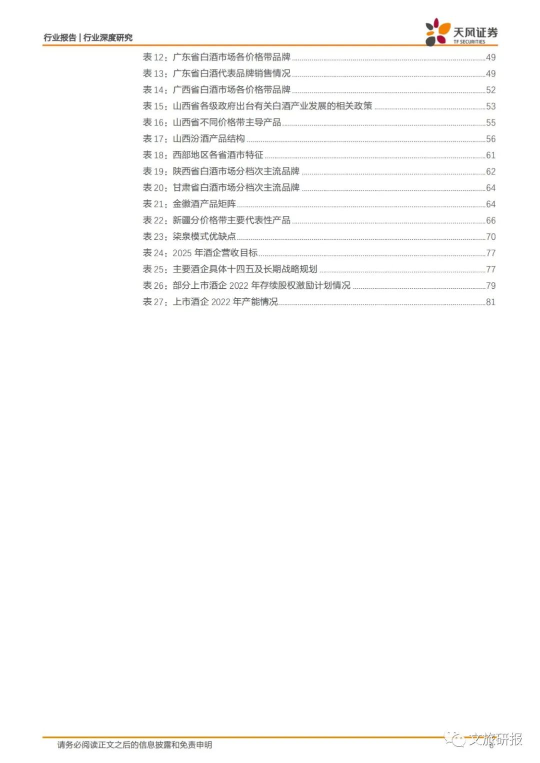20 余载 5 转轮回尽显行业韧性,深度调整见底再迎新一轮向上周期。2000 年至今,白酒行业发展与宏观经济及政策方向紧密相关,历经五轮周期,三年疫情扰动倒逼行业深度调整结构升级,随疫情快速达峰加速退潮,春节消费逐步恢复,疫后复苏节奏加快推动行业新一轮向上周期初显,利好白酒板块。回首历史,伴随政务、商务、个人消费共同驱动行业需求环境变化,白酒企业不断结构调整积极求变,档次逐渐分化。宏观经济疲软时高端酒企业绩&估值确定性更强,随消费升级提档,次高端酒企紧随高端打开价格带空间。20 余载历经 5 轮周期:1)00-03 年,多数酒企顺应时代发展以及政策因素开始了产品结构和管理体系的调整,品牌力区分出现;2)04-08 年,政商务需求推动行业高速发展,次高端酒企高端化初见成效,名优酒企充分受益,08 年金融危机系统性风险增强下行业重回调整期;3)09-13 年,四万亿计划带动白酒消费量价齐升,限制三公消费出台催化行业转折,盛世过后高端依旧稳健;4)14-18 年,商务及个人消费取代政务消费主导需求转型,消费升级背景下,行业量减价增、高端化、品牌化成发展趋势,高端酒拉开价格空间推动行业上行,17-18 年“去杠杆”叠加“中美贸易战”,实体经济下滑驱使白酒消费受挫;5)19 年至今,疫情扰动短期影响酒企发展,行业价增量减趋势下,高端化道路延续,随着疫情防控的优化以及经济企稳恢复,行业估值&业绩有望逐季度加速恢复再攀高峰。细看区域:我们认为,未来白酒行业龙头集中化趋势仍将延续,各大名优酒企加速抢占小酒企的市场份额,产品渠道强势、品牌力强及顺应消费升级而不断进行产品升级和迭代是白酒企业的核心竞争力。我们分析了华东、西南、华中、华南、华北、西部共 6 区 12 省的白酒经济情况、白酒市场及消费特点、区域龙头的演变过程。分区域来看,1)华东地区经济发达消费层级较高,酒市消费领先,淡雅绵柔苏酒偏好低度浓香,省内洋河今世缘位列二强,徽酒则以次高端及大众市场为主,省内高端茅五领航,次高端本土地产酒打天下;2)西南地区川贵领衔行业,浓酱双轮驱动高质发展,地域生态资源突出叠加政策扶持下名优酒企汇聚,茅五泸领头多产区品牌矩阵共繁荣;3)华南地区经济快速发展带动白酒消费,广东酱香市占过半,浓米清香皆具发展潜力,广西米香酱香浓香三足鼎立,酱香发展势头强劲,本地酒企聚焦低价位;4)华北地区高端酒与光瓶酒各领风骚,山西产业结构多元化转型下汾酒一家独大,引领清香型白酒繁荣发展;5)西部地区消费水平低基数,百元以下地产酒及光瓶酒为主,长期发展空间较大。纵观行业多轮周期,市场环境与自身品牌力影响成为名优酒企渠道模式的核心考虑。回顾酒企渠道更迭过程,全国性名酒立身高品牌认知,渠道控制权逐步由经销商向厂家聚拢,消费升级行业扩容下渠道深耕与精细化运营、控量提价成为全国化酒企渠道管理的重中之重。区域性酒企则更需通过渠道营销占领消费者心智,精细化的市场掌控是打好品牌力建设的基础,多数厂家选择发展团购、本地渠道精细化运营等方式稳控终端,为品牌价值提升奠基。我们认为,随着行业的成熟发展,区域深耕、扩展团购、数字赋能、品牌精细运营成为渠道更迭的大势所趋,扁平化、精细化的渠道铺设将成为名优酒企品牌之争的核心所在。放眼未来:名优酒企十四五规划志存高远,产能扩张着眼长期发展。一方面,多数酒企十四五目标明确,彰显充足企业信心,白酒消费结构属于存量市场竞争,品牌化、品质化发展趋势愈加明显,名优酒企享受消费升级、集中度提升的红利;另一方面,近几年疫下经济下行压力使白酒企业产能扩张速度放缓,产业整体产能过剩与优质白酒供给不足的结构性矛盾长期存在,产能扩张将成为名优酒企竞争的关键一环,头部企业加速扩产利好长效发展。报告较长,如需要PDF完整版可关注公众号,回复“报告”扫码进群获取,群内每日免费分享文旅大消费产业研究报告。