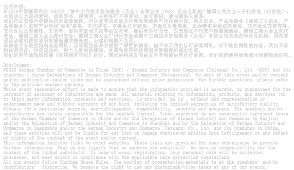 The information displayed above may be subject to change. The German Chamber of Commerce in China | Shanghai reserves the right to final interpretation.