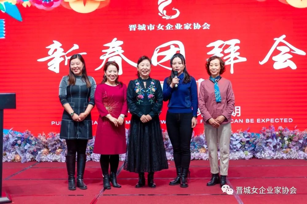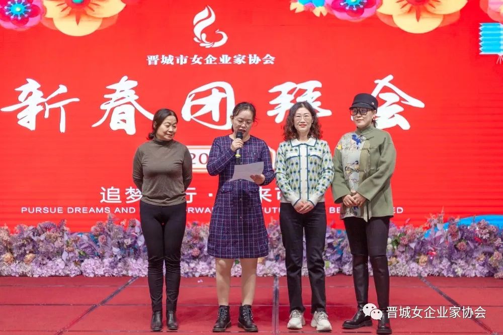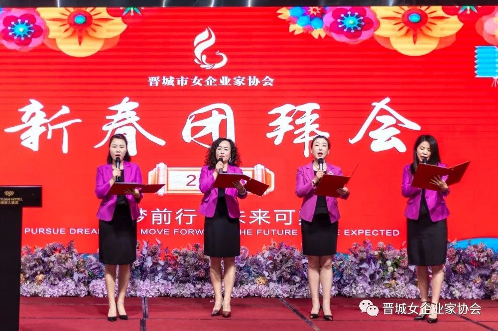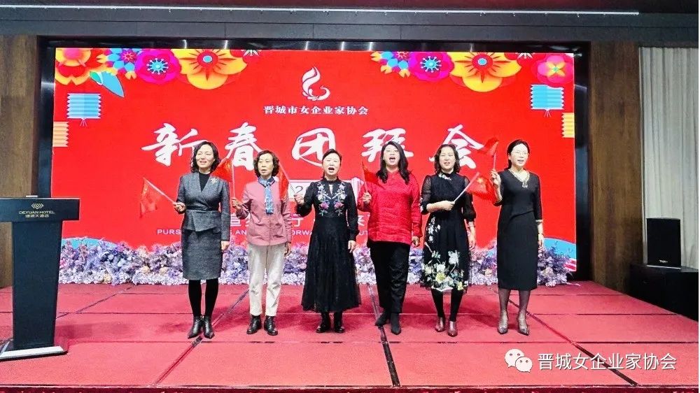 新春团拜会在铿锵有力的女企会歌《巾帼英姿》中拉开序幕。
