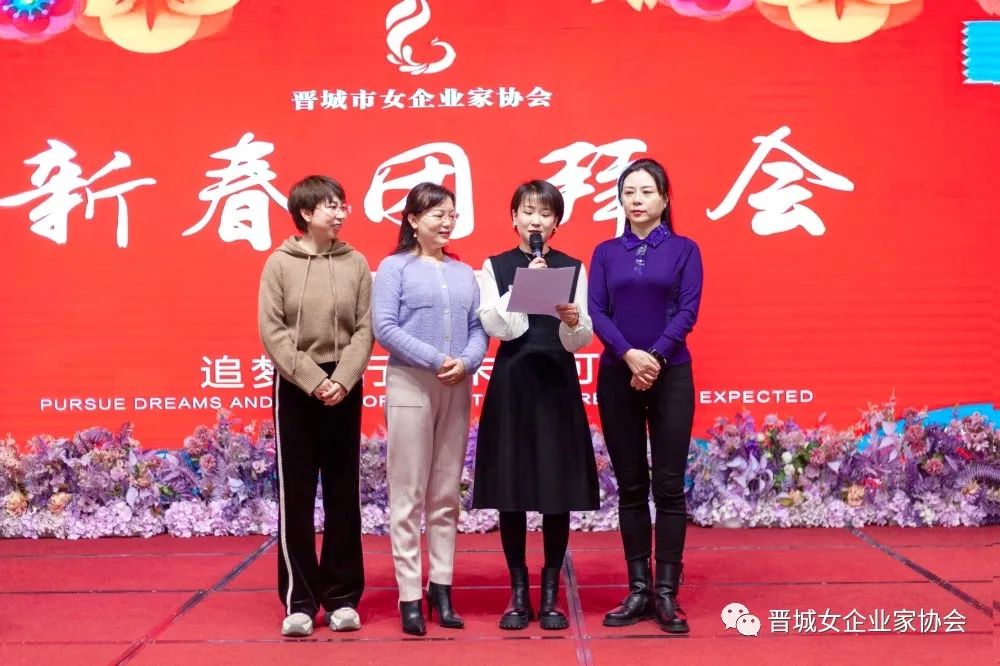 一元复始万象新,岁月流金盛年来。2月5日,正值“元宵”佳节,晋城市女企业家协会以“追梦前行 未来可期”为主题的新春团拜会在德源大酒店热闹开启,姐妹们欢聚一堂、共叙友情、共话发展。会长王青俊、执行会长王文霞、常务副会长茹灵英、许月凤、焦静霞、李起翠及副会长代表40余人参加此次活动。