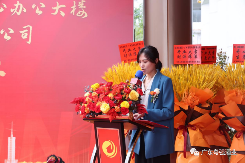 贵州茅台酒销售有限公司广东省区副经理李萍女士在致辞中表示对粤强集团广州东部运营中心的正式开业表示祝贺,,非常荣幸能与各位嘉宾以及酒类生产同仁共同见证粤强集团这一具有里程碑意义的时刻。粤强酒业成立于1988年,在企业发展的35年里,见证了白酒市场发展的黄金期、复苏和多个震荡调整,但始终保持着最开始的初心,发展的定力,一步一脚印踏实的深耕市场,再到今日粤强集团广州东部运营中心的正式开业,又是粤强酒业在酒板块领域立足新的起点、迈上新的征程。