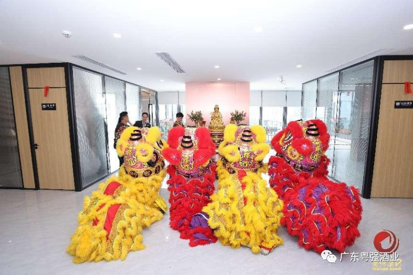 瑞狮采青寓意瑞气临门,锣鼓一响,黄金万两,虎虎生威的雄狮腾飞了,它预示着广东粤强集团实业集团有限公司在未来的发展中定能财源滚滚,金银满钵。瑞狮吐对联这也是醒狮送给主办单位的祝福,希望在以后的岁月中事业蒸蒸日上,更上一层楼!最后醒狮旺场,醒狮拜门,就是把吉祥和好运散播到每一个角落。