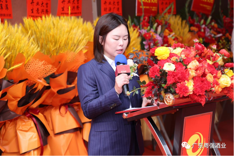 广东酒类行业协会会长彭洪先生为本次开业庆典送上祝贺词,在发言中表示广东粤强酒业有限公司成立至今已有30多年,粤强每一个新项目的启动于酒行业发展而言都助了一臂之力。粤强在与酒行业共进退的这些年里,东部运营中心的成立不仅是粤强渠道力的加持,还肩负着为区域酒类市场提供优质产品和高质量服务的重大战略使命。