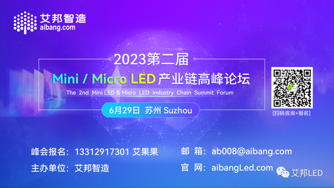活动推荐:2023年第二届Mini/Micro LED产业链高峰论坛(6月29日)
