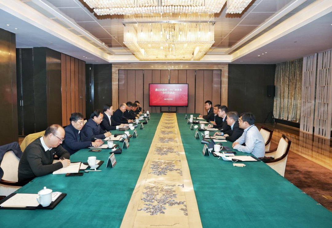 2月9日上午,惠山区政府与中广核资本举行合作洽谈会,区长程松与中广核资本控股有限公司总经理孙鹏一行座谈交流,双方围绕进一步加快储能产业基金落地、零碳产业等合作事宜进行了深入探讨。区领导何国清参加会谈。