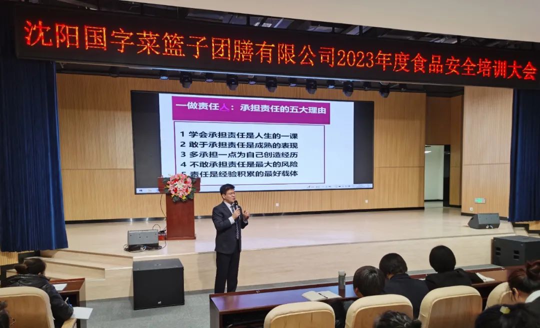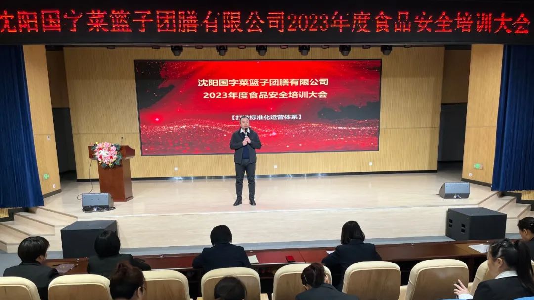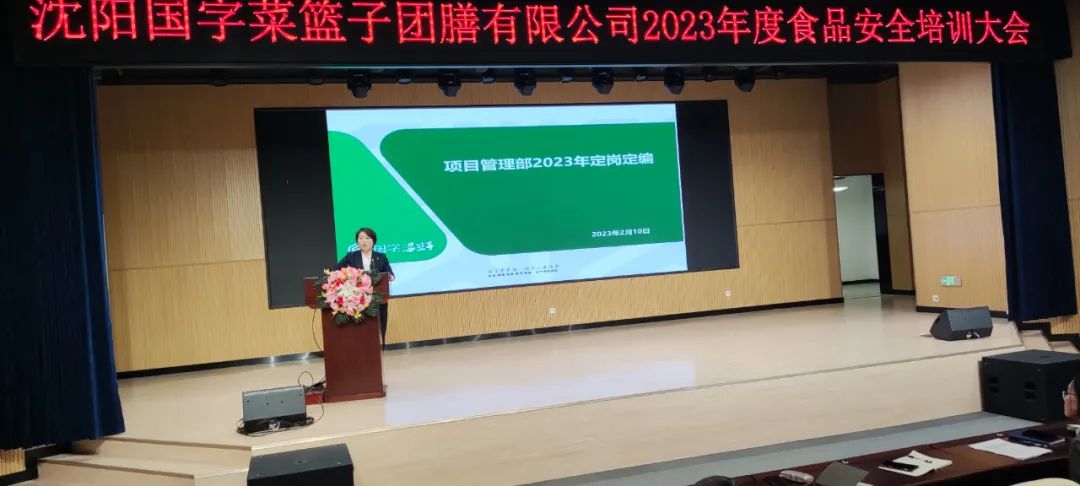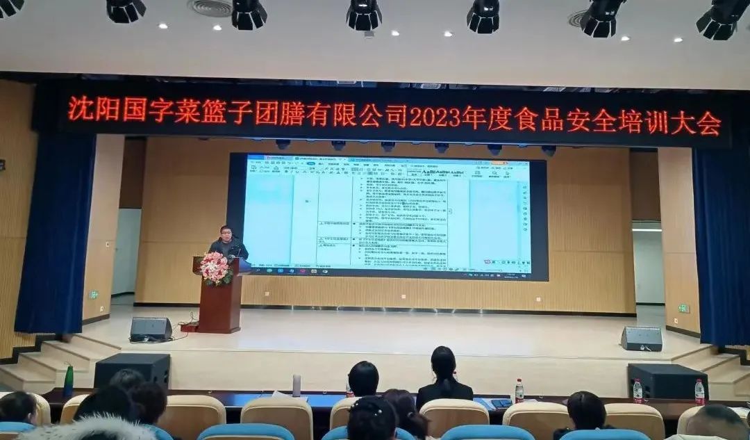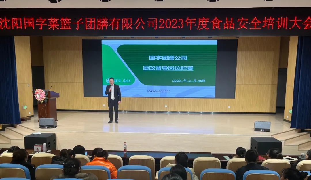 为持续完善校园供餐服务质量,进一步压紧压实食品安全属地管理责任和企业主体责任,2月10日-11日,沈阳国字菜篮子团膳有限公司组织2023年度食品安全培训大会。沈阳国字菜篮子团膳有限公司总经理陈克强、运营总监阮永凤、技术质量中心张丽影、项目管理部部长庄晓秋、各学校项目管理部区域经理、集团项目经理、项目经理等相关管理人员参会。