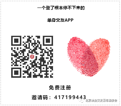 如果你人在北京,有稳定收入,专科以上学历,年龄在23-40岁的女性,24-50岁的男性,可免费下载注册(微信扫描)