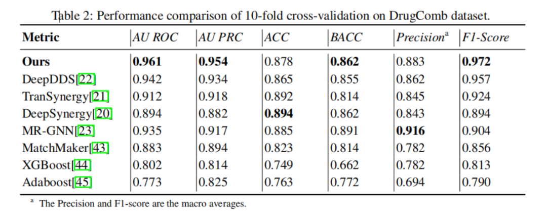 如表2所示,新方法在所有重要指标上都取得了当前最好的结果。具体来说,在最重要的两大指标AU ROC和F1,新方法比第二优的DeepDDS方法提升2%以上,比经典机器学习方法更有超过20%的提升。