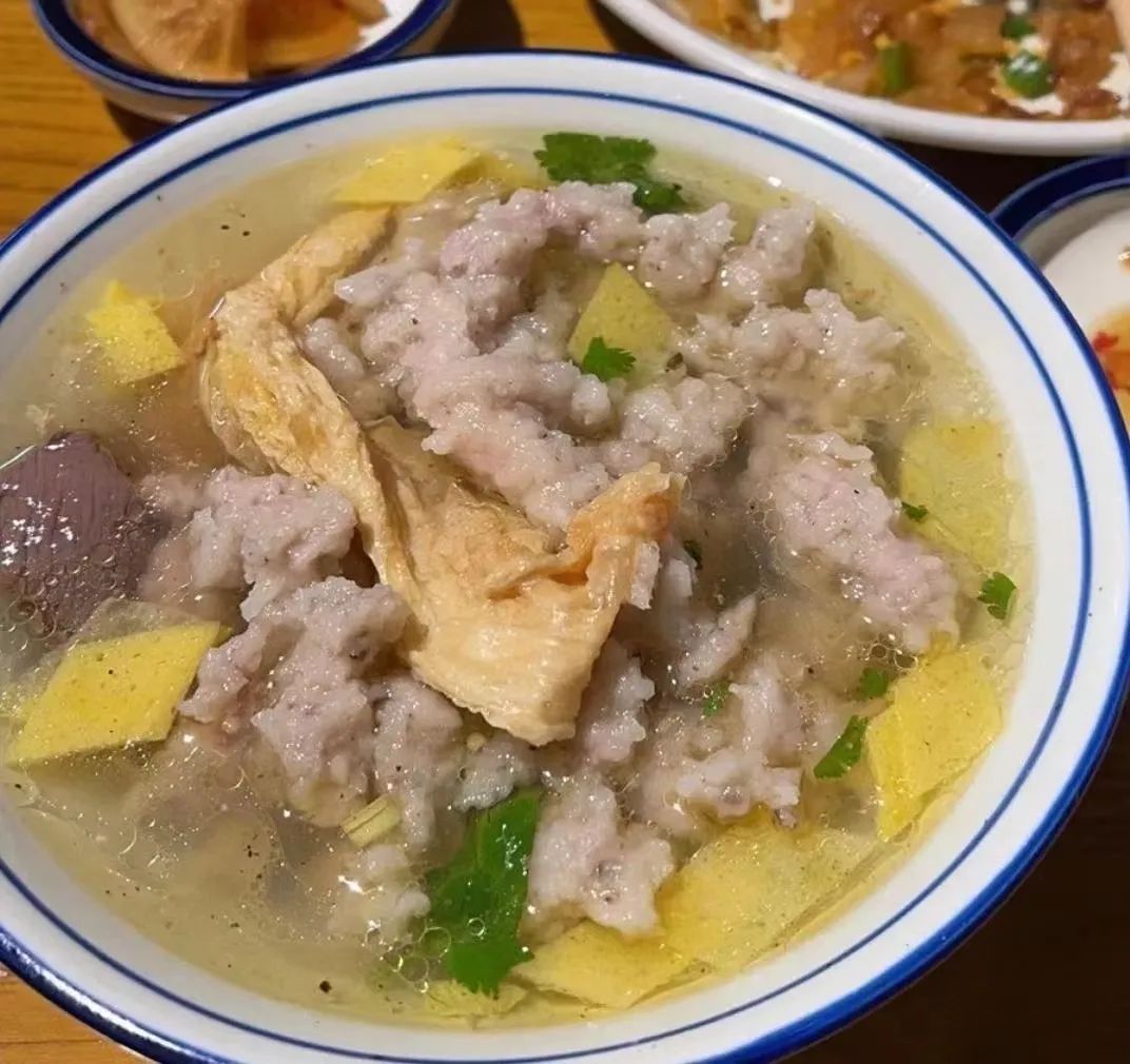 骨头粉肉汤( 猪小排30克、猪肉8克、山药5克、小白菜5克)