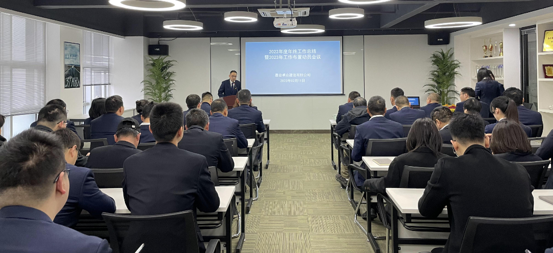 2023年2月11日上午,嘉业卓众建设有限公司开展了“2022年度年终工作总结暨2023年工作布置动员会议”,公司全体员工出席参加了本次会议,会议由公司办公室主任姚王飞同志主持。