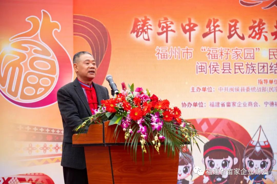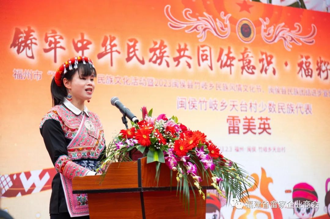 活动中,受雷和孙会长委托,我会党支部副书记雷伙德代表商会致辞:“这次活动的隆重举办,对保护和弘扬畲族优秀传统文化,促进各民族的团结交融,展现新时代少数民族新风貌,铸牢中华民族共同体意识,推动民族乡村经济社会文化的繁荣发展,具有十分重要的意义。未来,福建省畲家企业商会将继续以党的二十大中关于乡村振兴工作的重要部署为指引,积极响应国家、省、市各级政府的号召,将企业的发展与畲族乡村振兴结合起来,助力畲族乡村产业振兴、人才振兴、文化振兴、生态振兴,在推进中国式现代化进程中展现畲商作为,共同开创畲族人民美好幸福的生活!”
