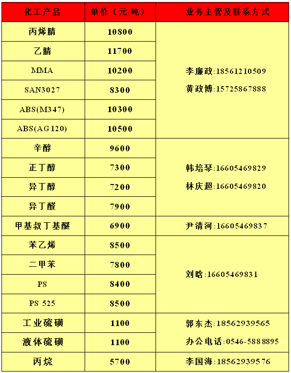 利华益利津炼化有限公司2月12日产品报价
