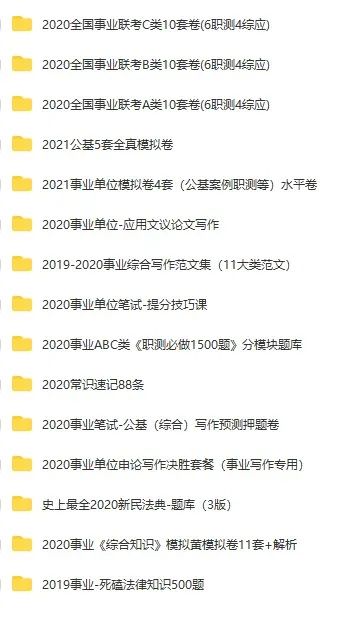 • 事业单位各省市考试资料、ABC类联考卷、公基/常识/写作等通用资料