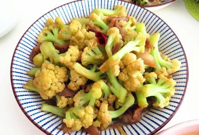 2.花菜炒肉片(有机花菜95g、肉片10g)