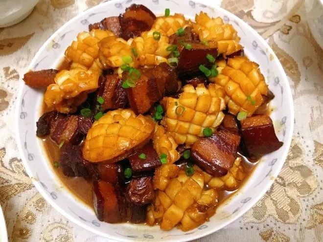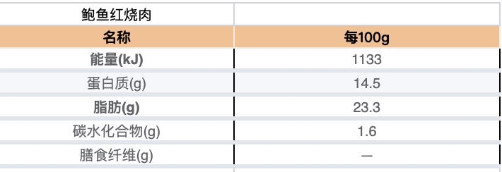 1.鲍鱼红烧肉(鲍鱼35g、五花肉80g)