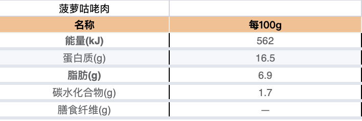 1.菠萝咕咾肉(糖里脊76g、菠萝21g)